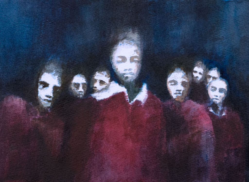 Choir, oil on paper, 19cm x 26cm