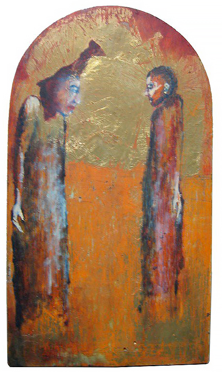 Levitation, oil, pigment and gold leaf on wood, 42cm x 24cm
